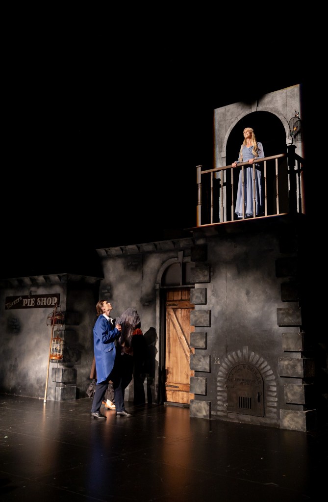 This is where the show both shines and dulls. The set they have is remarkable and allows many ways for the performers to play and be creative with their movement; however, a lot of the action always takes place in imaginary boxes. A notable moment would be during Johanna in Act II. Sweeney has to be confined to his shop for the murder and Johanna is also confined to their tower, but Anthony was confined to downstage center in a spotlight the whole number.