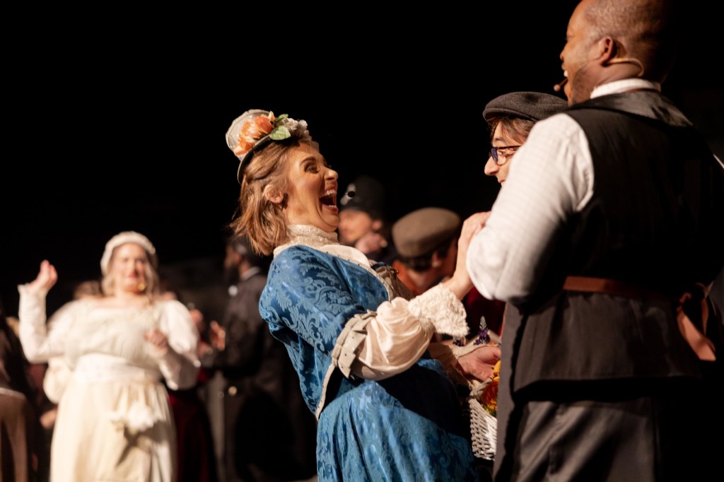 Another big moment where the balance and blend just missed the mark entirely was during “Kiss Me”. Anthony Hope (Jesse Nasmith) and Johanna (Carmen Harris) were ill matched as a duet of to be lovers. Jesse has a beautiful and lyrical voice that gives his character a softness to it. Carmen also has a well-honed operatic soprano voice that carries well and really speaks to her character being compared to a song bird. Both voices by themselves are beautiful, but during the duet the strong soprano voice consistently overpowered the tenderness of the duet. If both of them had an operatic tone so as to be on the same level or if both had adopted a softer tone, I feel like it would’ve blended better.