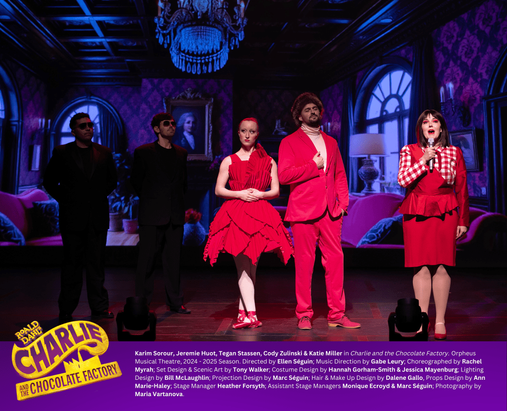 Musically, this show is wild in having no true genre to their music. You’ve got yodeling polka music, classic Sousa-esque marching music mixed with early 2000s punk rock, and even folksy Russian. This musical is wild in its choices that enhanced the characters they represented. Each of the songs for the ticket winners fit so perfectly well and were sung also amazing; however, I wish “More of Him to Love” wasn’t the first one we heard because it was so magnificent that it made the songs that followed feel less good, even though they were still remarkable. Augustus Gloop (Karsten Skeries) and Mrs. Gloop (Julie Heath) do an astounding job with my favourite song in the whole show: the humour, the character, and the yodeling had me aghast the whole time. Sadly, this energy wasn’t carried by the ensemble in other numbers. I found a lot of the bigger ensemble numbers lacked energy and weren’t as cohesive in the harmonies.